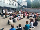 À l’issue de la matinée « ma rentrée avec l’Ugsel » nous nous sommes tous retrouvés dans la cour pour notre célébration de notre rentrée, en présence du Père Johann.